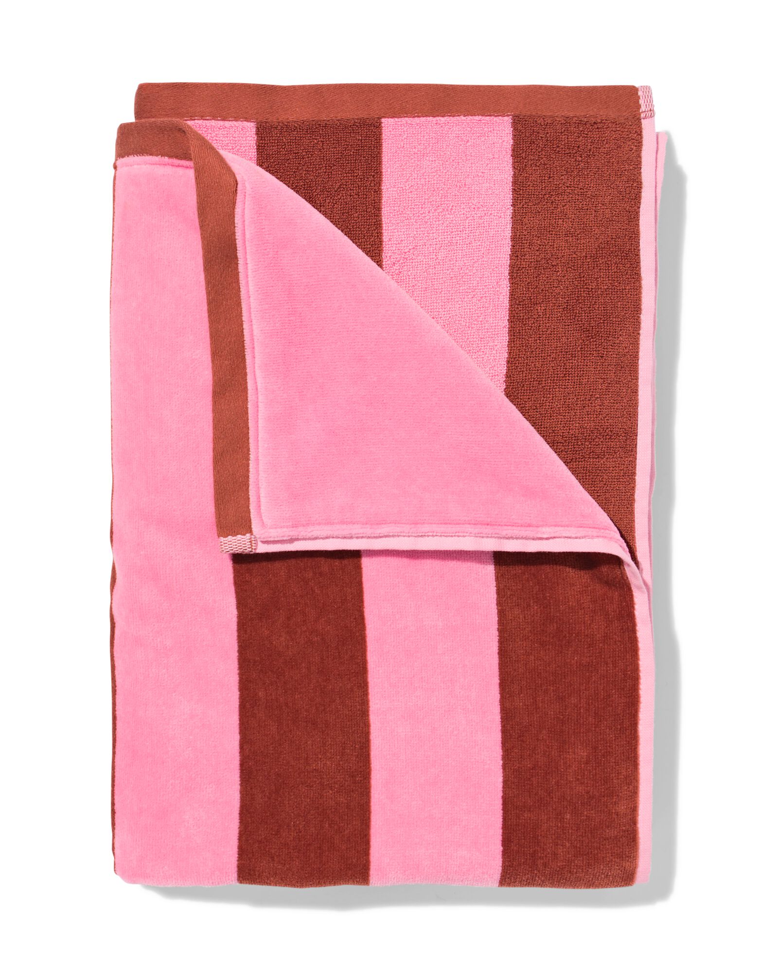 Bekijk product bij HEMA — bestel vandaag nog en ontvang de HEMA HEMA Strandlaken 90x180cm Velours Strepen (bruin) snel thuis.