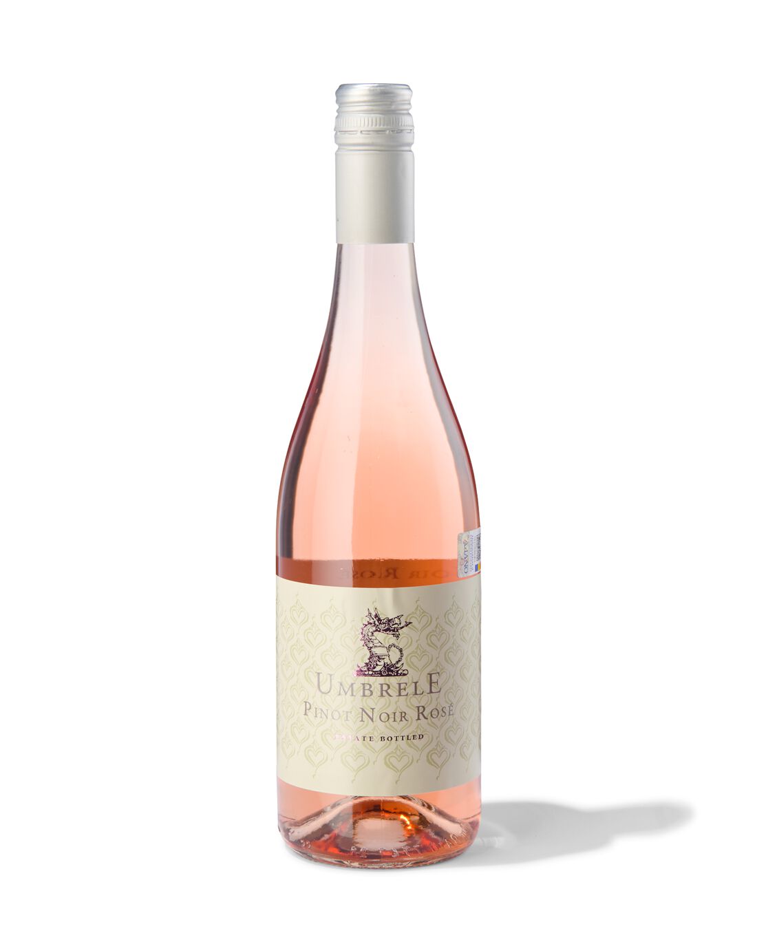 HEMA HEMA Umbrele Pinot Noir Rosé – 0,75 L nu voor slechts €0,-. Deze rosé gemaakt van de Pinot Noir druif heeft veel te bieden. Een fruitige geur van frambozen en bosaardbei. De smaak is verrassend fris met aromas van rijp, lichtzoet fruit. De rosé geeft zn kleur af door de (rode) schil van de Pinot Noir druif. De druiven worden heel lichtjes geperst, door het korte schil contact ontstaat er een mooie roze kleur. Het wijnland Roemenië is een land met een lange historie. De legende gaat dat de wijngod Bacchus zijn jeugd hier heeft doorgebracht. De wijngaarden zijn aan het begin van de 21e eeuw her-plant met de beste kwaliteit wijnstokken. De vinificatie ruimtes zijn modern en efficiënt. Geen 18? Geen druppel.De producteigenschappen: land van herkomst: Roemenië. wijnstreek: geheel Roemenië. druivensoort: pinot noir, . smaakprofiel: zwierig. lekker bij: aperitief, de borrel, voorgerechten en salades. alcoholpercentage: 12.5. merk: Umbrele. waarschuwing(en): Geen 18? Geen alcohol., . drinktemperatuur: tussen 8 – 10 °C. aroma: fruitig met aromas van frambozen en bosaardbei. artikel nummer: 17380045.