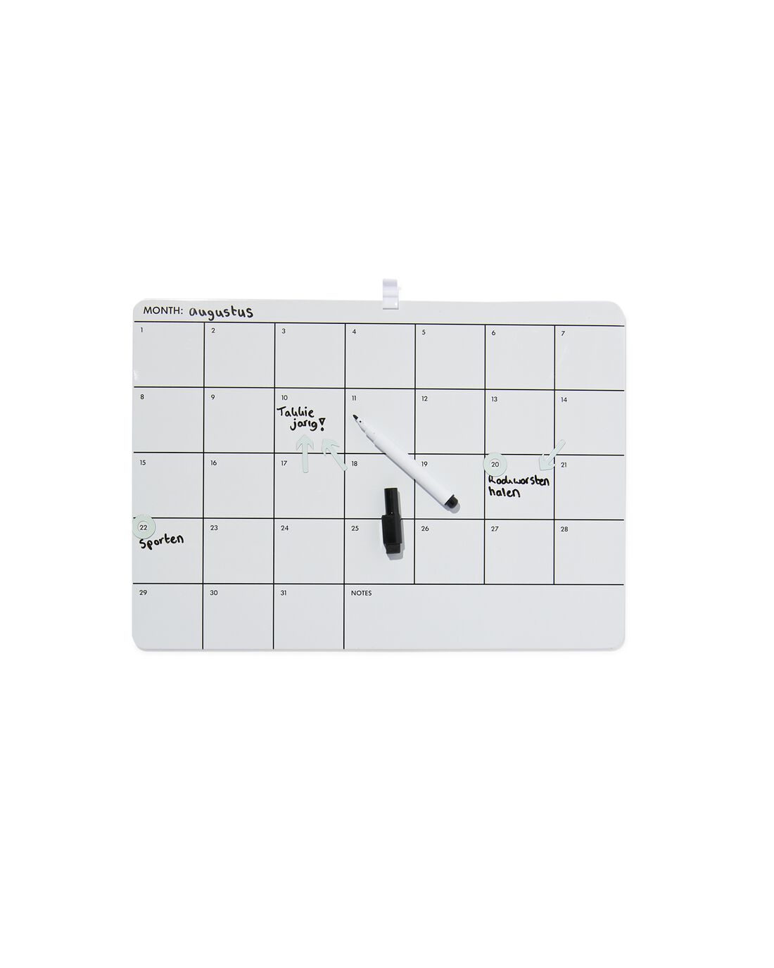 HEMA HEMA Whiteboard 28×39 Maandplanner nu voor slechts €9.99,-. Een whiteboard met maandplanner voor een overzichtelijke weergave van wat er allemaal op de planning staat iedere maand. Het bord is inclusief magneetjes om speciale activiteiten te benadrukken en een stift met sponsje om je notities weer uit te vegen. Je kunt het bord bevestigen aan de muur met behulp van de haakjes op de achterzijde of met de bijgeleverde magneet. Voorkom zwarte vegen door de inkt eerst goed te laten drogen voordat je het wegveegt. De producteigenschappen: merk: HEMA. lengte in cm: 28. breedte in cm: 39. artikel nummer: 14100615.