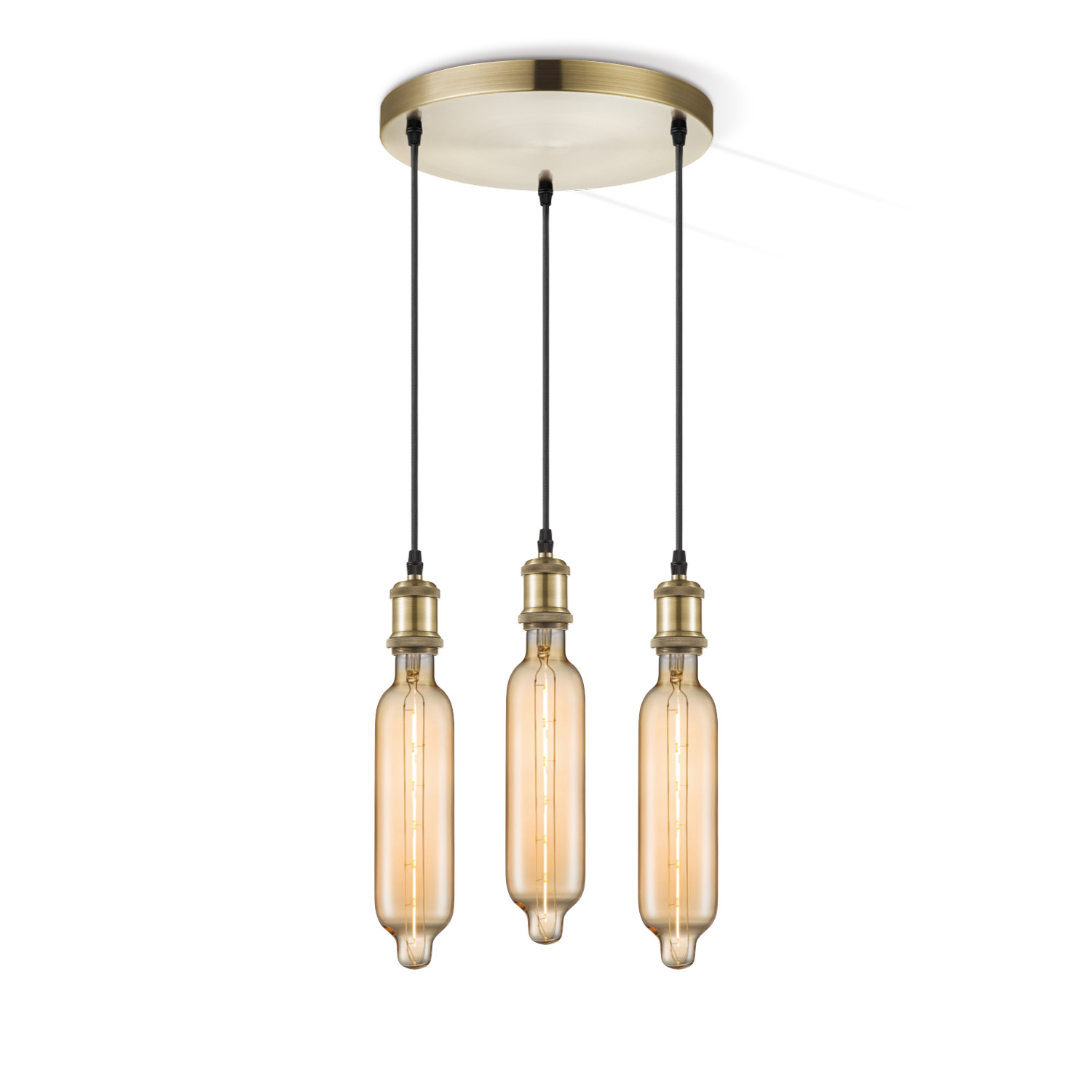 Deze vintage hanglamp met 3 zwarte textielsnoeren, shiny fittingen en vintage lampen is stralend om te zien boven een keukeneiland, eettafel of bijzettafel. Ook in een industrieel interieur creëren de meegeleverde decoratieve LED lichtbronnen een topambiance. Ze zijn superzuinig, sterk, trendy en uiterst stevig verpakt. Na aansluiting op een externe dimmer (excl.) kun je zelf de lichtsterkte bepalen. Dat belooft een hoop gezelligheid in jouw home sweet home!