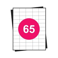 Huismerk A4 stickervellen, 65 per vel, wit, permanent, 38,1mm x 21,2mm 100 sheets — Huismerk