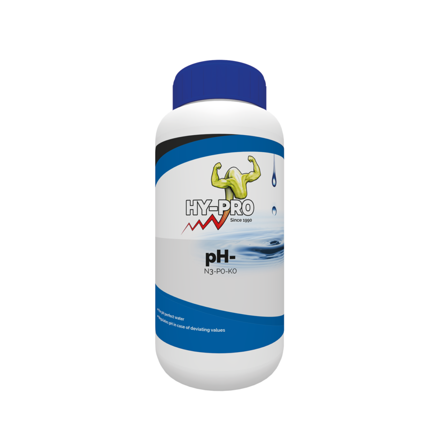Met de Hy-Pro PH- heeft u een PH-corrector die de zuurgraad van uw voedingsoplossing verlaagt tot de juiste waarde in de groeifase.Verkrijgbaar in: 500ml, 1 liter en 5 liter.