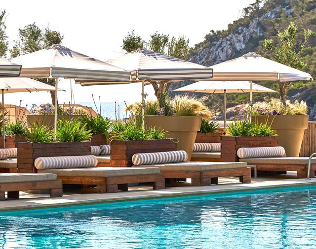 Hyde Ibiza is perfect gelegen aan een van de mooiste baaien van het eiland. Tijdens een vakantie op dit perfecte adres ben je dan ook zo op het prachtige strand van Cala Llonga. Blijf je liever bij een van de drie fijne zwembaden, dan zit je hier eveneens goed, want op de zonneterrassen kun je heerlijk relaxen en wegdromen bij het uitzicht over de baai van Cala Llonga.
