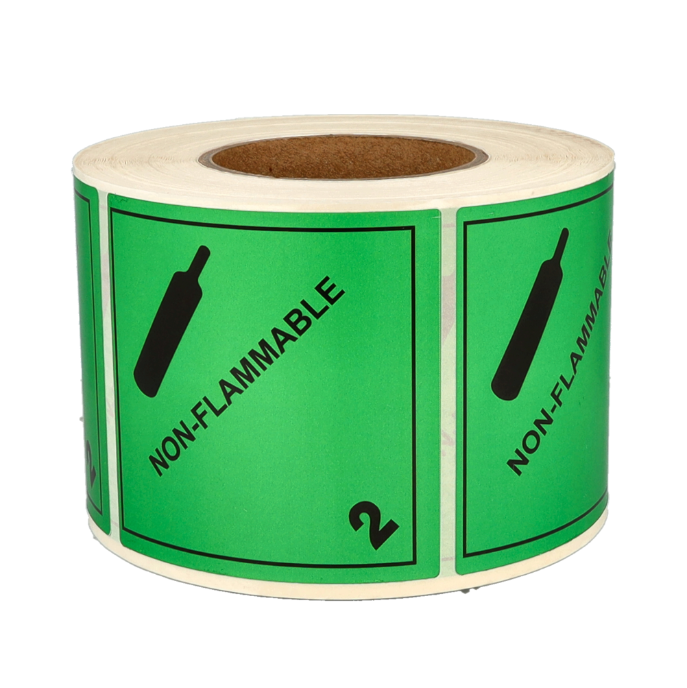 IATA 2.2 Non-flammable gas label, 100mm x 100mm, 1.000 etiketten, core 76mm, — Zolemba.nl