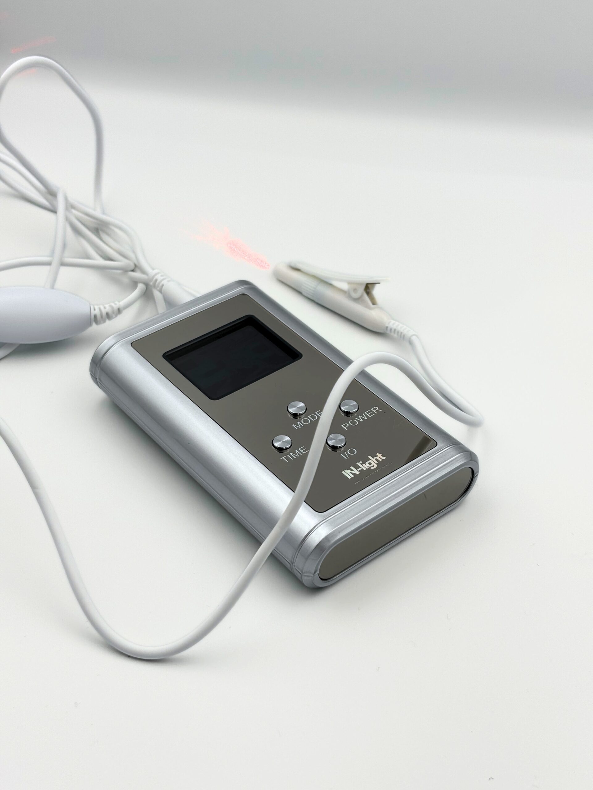 De IN-light Pro is een rood licht therapie laserapparaat dat je overal kan gebruiken. De laser maakt gebruik van een intranasale techniek, waarbij er een neusclip met een rood licht lampje in de neus wordt geplaatst. Dit zorgt voor een betere doorbloeding en stimulatie van de cellen, met verschillende gezondheidsvoordelen als gevolg.