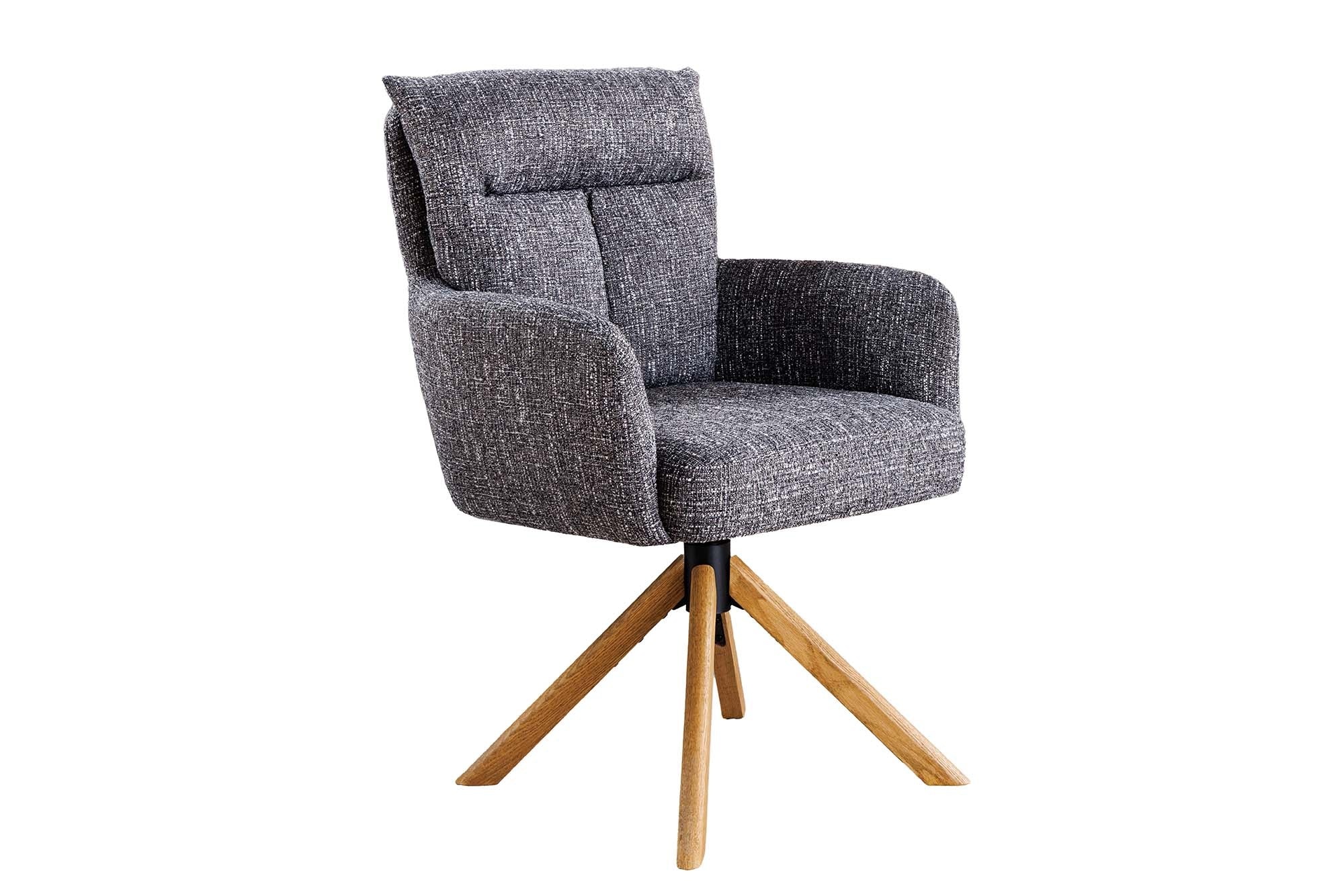 Draaistoel BIG GEORGE 360° met automatische terugkeerfunctie, getextureerde stof in grijs met eikenhouten frame – 47936 — Invicta Interior