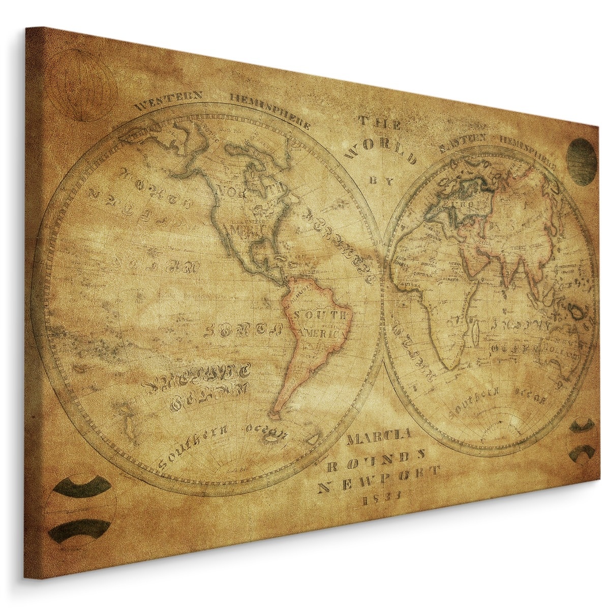 Schilderij – Wereldkaart uit de 19e Eeuw, Premium Print — Karo-art