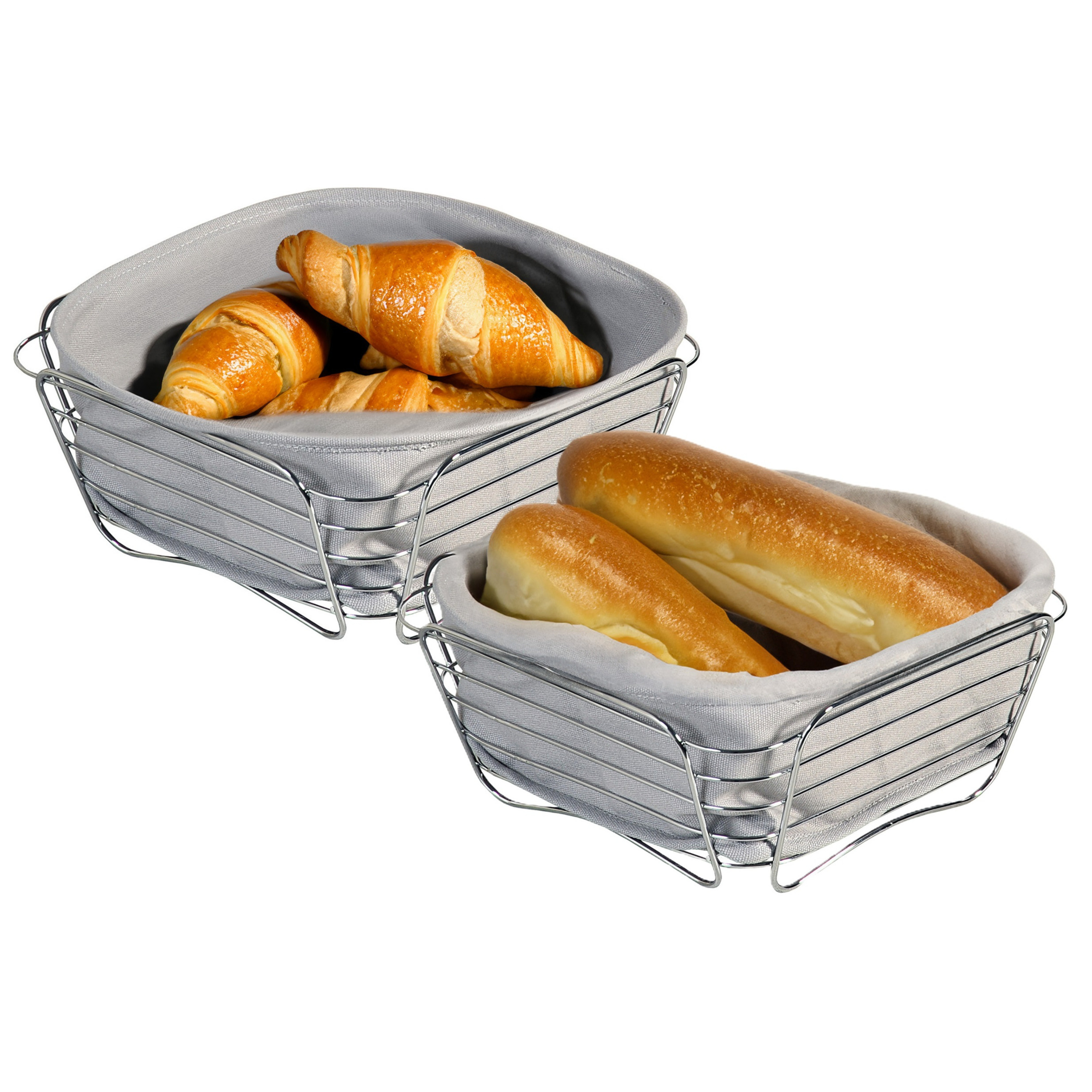 Broodmandje met stof – 2x – metaal/peva – grijs – vierkant – D26 x H11 cm — Kesper