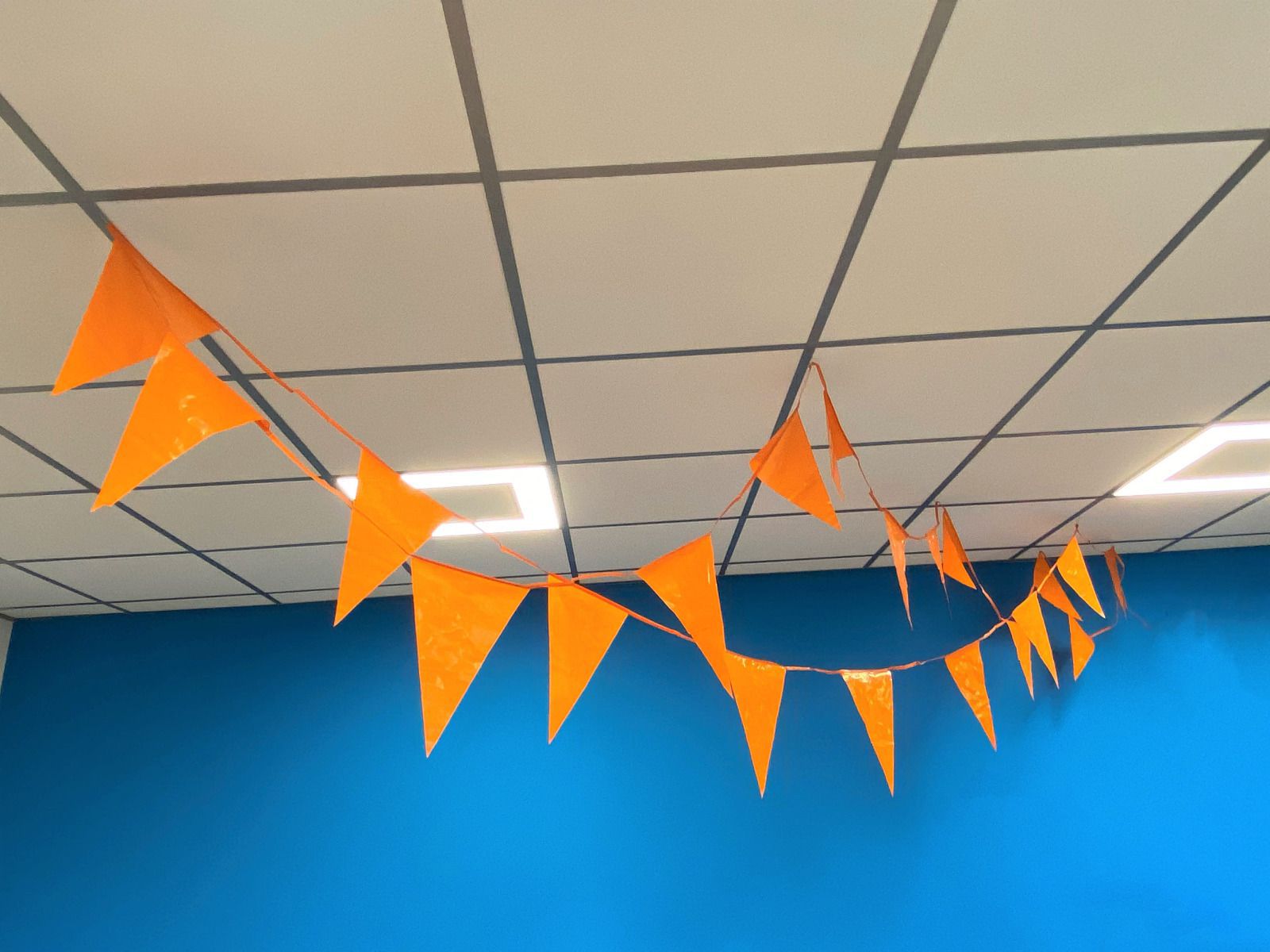 Wat is de Oranje vlaggenlijn 10 meter lang met 18 puntvlaggen?