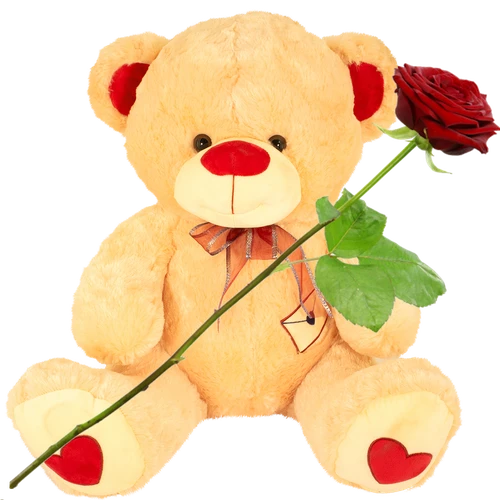 Een grote knuffelbeer XXL in het licht bruin van ca. 75 groot. Erbij een prachtige verse rode roos maakt het knuffel cadeau compleet. Bestel vandaag nog. Thuiswinkel Lid.