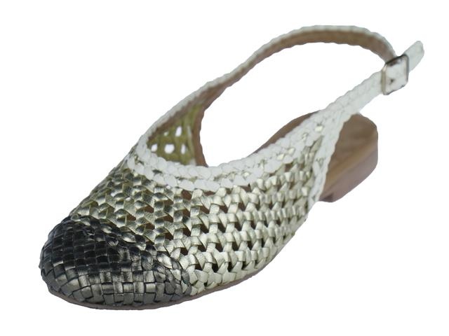 Lazamani trendy en comfortabele dames slingback. Deze instapper van Lazamani is een echte blikvanger voor de zomer! Het artikelnummer is: LA33776. De kleur is goud combi oftewel goud met brons en beige gecombineerd in een vlechtmotief. De hiel is een open hiel met een gesp sluiting zodat je hem perfect passend kunt maken. De voering is van leer.