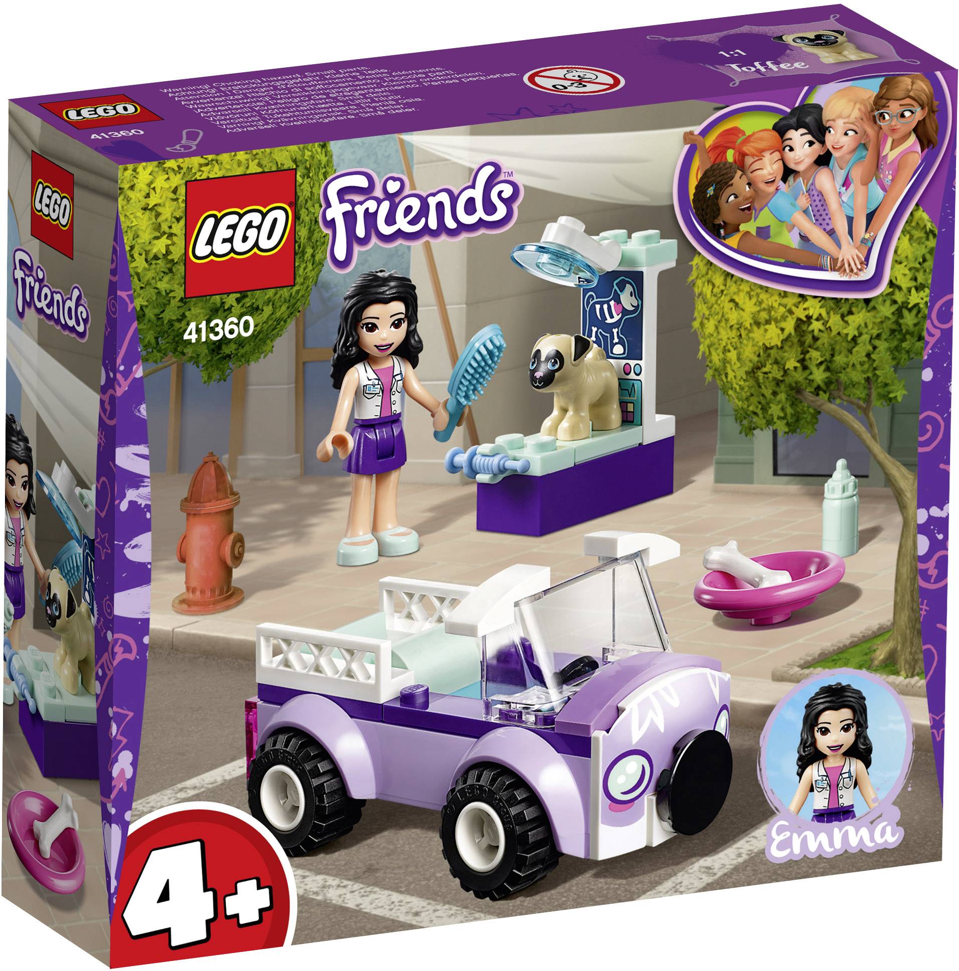 LEGO Friends 41360 Emma`s mobiele dierenkliniek Help LEGO Friends Emma zieke dieren te redden in heel Heartlake City. Spring in je coole dierenartsenauto om de zieke mopshond Toffee op te halen. Laat Emma de minimopshond onderzoeken op de onderzoekstafel en dien hem medicijnen toe met de injectiespuit. Geef hem daarna een lekker bot en een babyfles. Borstel zijn vacht zodat hij zich snel weer beter voelt! Help LEGO Friends Emma voor zieke huisdieren te zorgen in haar mobiele LEGO Friends dierenkliniek! Laat jouw beginnende dierenarts huisdieren verzorgen met LEGO Friends 41360 4+ Emma's mobiele dierenkliniek. Deze LEGO 4+ dierenartsspeelset is speciaal ontworpen voor kleuters en jonge kinderen om leuk en eenvoudig mee te spelen. De set bestaat uit een coole dierenambulance gemaakt met een speciale startsteen-bouwplaat waarmee zelfs beginnende bouwers de trots kunnen ervaren van het helemaal zelf bouwen van gebouwen, voertuigen en meer. De bijgesloten eenvoudige bouw- en speelgids helpt ook jouw jonge dierenvriend het doel van de bouwstappen te begrijpen en stimuleert de verbeelding en het vertrouwen voor de perfecte start van het bouwen met LEGO stenen in een vertrouwde LEGO Friends omgeving. Deze eenvoudige LEGO dierenartsset voor kinderen bevat speelgoeddierenartsspullen zoals een onderzoekstafel om een ziek huisdier te onderzoeken, een injectiespuit, een borstel, een hondenbot en een babyfles voor eindeloze uren rollenspelplezier, plus een LEGO Friends Emma minipoppetje en een minimopshondfiguur. LEGO 4+ sets zijn speciaal ontwikkeld voor leuk en eenvoudig bouwplezier voor jonge kinderen en om hun vertrouwen te stimuleren dankzij de eenvoudige bouwstappen, voor de perfecte start van bouwen met LEGO stenen. |