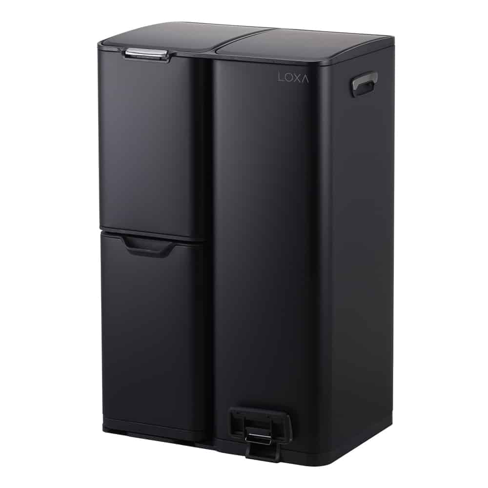 LoXa – Prullenbak Cairo 60L – 3 Compartimenten – Pedaalbediening – Soft-Close – Vingerafdrukvrij – Met Handgrepen – Hygiënisch – Duurzaam — Lente Deals