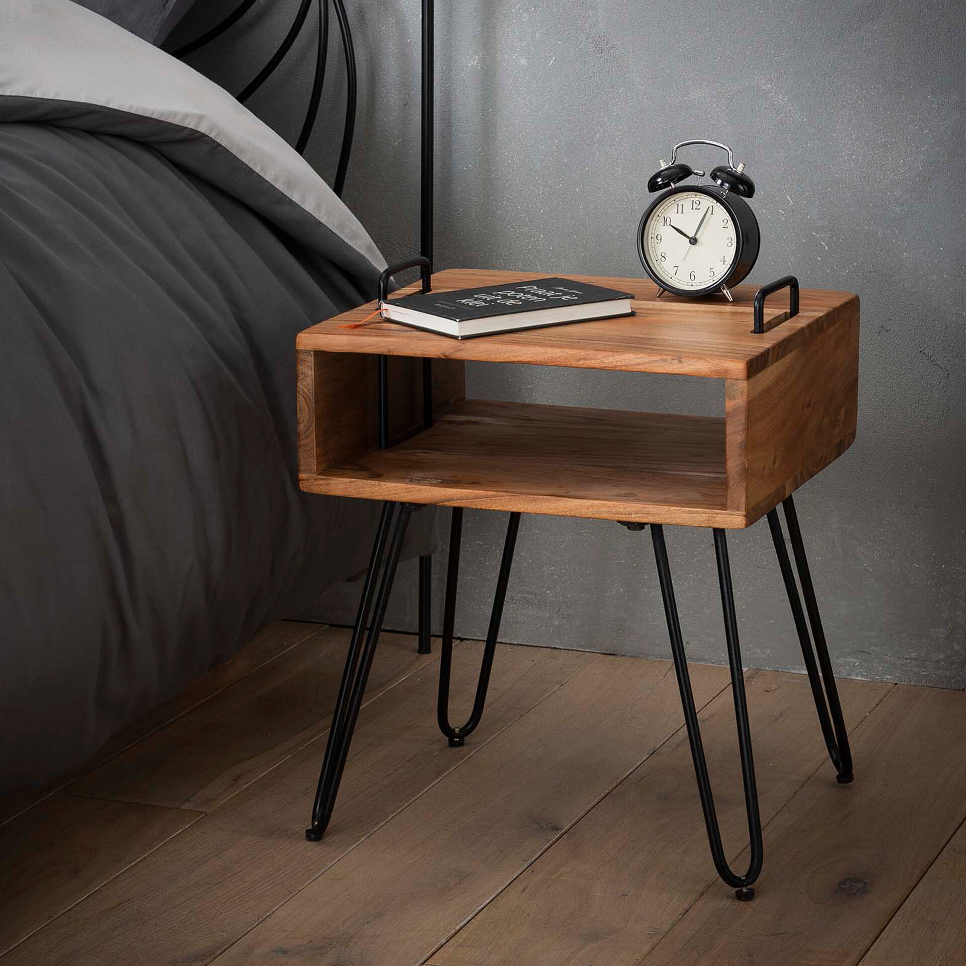 Industrieel Nachtkastje 'Jackie' Acacia met open vak — LifestyleFurn