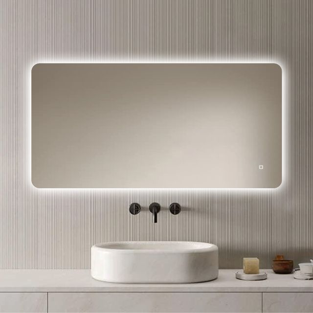 De Malaga 120×60 is ontworpen met subtiele afgeronde hoeken en een randloos design, wat zorgt voor een zachte, stijlvolle uitstraling. Dankzij de brede afmeting biedt deze spiegel voldoende reflectieoppervlak – ideaal voor dagelijks gebruik of dubbele wastafels.