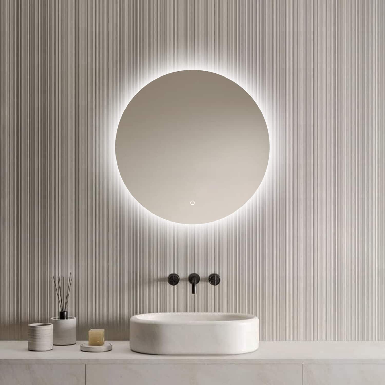 Loxa – Ronde Badkamerspiegel Lena met Led 60cm – Dimbaar – Condensvrij vlak – Duurzame kwaliteit – Eenvoudige installatie — Loxa