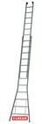 2-delige aluminium uitgebogen opsteekladder met toprollen waarvan alle delen kunnen worden uitgenomen en afzonderlijk kunnen worden gebruikt.