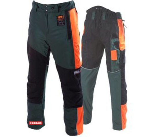 Veiligheidszaagbroek met aangenaam draagcomfort. EN 381, Beschermingsklasse 1. Voorbeenbeschermer.
