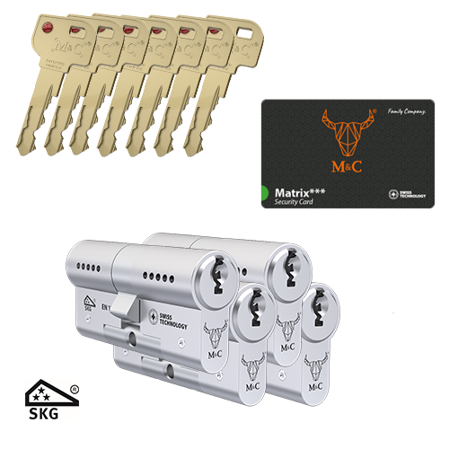 4x M&C Matrix cilinders SKG3 – gelijksluitend met snijsleutel gelijksluitende cilinders – SKG3 met snijsleutel cilinderslot SKG3 – snijsleutel met gehard stalen brug — M&C