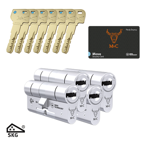 Hier vindt u de M&C Move cilinder. Een nieuwe serie van M&C met natuurlijk het SKG 3* keurmerk en daarbovenop ook de extra gehard stalen brug. M&C heeft de Move serie speciaal uitgebracht met een nog betere beveiliging bovenop het SKG 3 keurmerk. Zoals extra stalen plaat voor het boren en een beweegbaar element. Verder zijn de cilinders ook voorzien tegen kerntrekken, uitboren en lockpicken etc.
