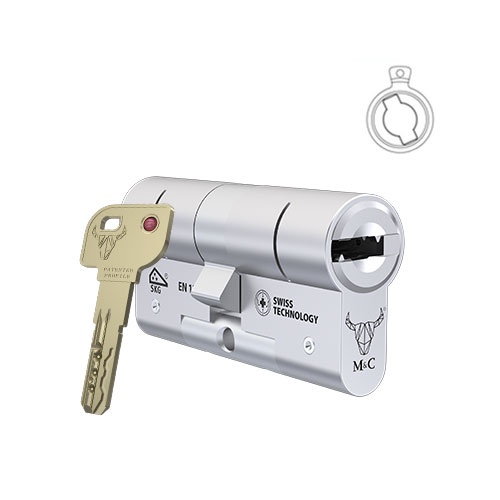 Een bestelling van meerdere M&C cilinders worden altijd direct gelijksluitend gemaakt. De M&C Minos het paradepaartje van M&C. Een nieuwe cilinder met nog meer veiligheids elementen ingebouwd zijn. M&C Minos is standaard voorzien van een nood en gevarenfunctie (paniek functie). Hierdoor is de deurcilinder tweezijdig te bedienen – ook wanneer er een sleutel in de andere zijde van de cilinder zit. De sleutels van de M&C Minos zijn gepatenteerd tegen ongeoorloofd kopieren. Deze zijn ook extra beveiligd doormiddel van een verhoogd profiel. Bij elke set wordt een certificaat geleverd waarmee je bij een geautoriseerde dealer sleutels en,of cilinders kunt laten bijmaken. Alle modellen en maten veiligheidscilinders van de M&C Minos kunnen wij in een sluitplan verwerken. Zo kun je bepalen wie toegang heeft tot welke ruimte, zowel zakelijk als prive. Een voorbeeld voor een apartementencomplex is het een uitkomst om voor elke bewoner toegang te hebben voor zijn eigen woning en schuur. Maar een beheerder kan met zijn sleutel alle woningen openen en de tuinman heeft alleen toegang tot het hek en de algemene ruimtes. Zo is er met de M&C Minos heel veel mogelijk. M&C Minos is beveiligd tegen boren, openpikken, kerntrekken, de slagmethde en de impressietechniek. Deze cilinder heeft bovenop het SKG 3* keurmerk ook nog een hardstalen brug waarbij het bijna onmogelijk is om de cilinder te breken – zelfs zonder deurbeslag. In de volksmond wordt veel gesproken over het kerntrekken. Maar in de praktijk wordt vaak de cilinder gebroken waardoor de deur gemakkelijk geopend kan worden (ook voor 3-puntsluitingen). Bij aanschaf van een SKG 3* cilinder hoeft de cilinder nog niet beveiligd te zijn tegen het breken van de cilinder. Daarvoor is dan weer het kerntrekbeslag wat niet nodig is bij deze deurcilinders met extra stalen brug. De M&C Minos deurcilinder is: