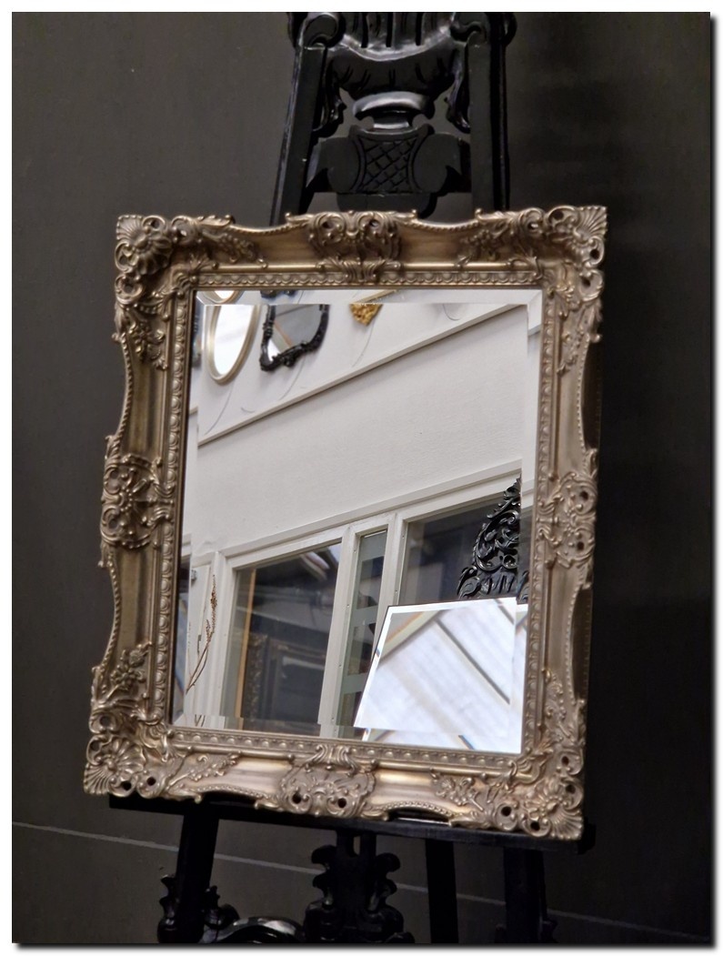 Mega barok spiegel in champagne zilverWeelderig frame met ornamentenMooie wandspiegel of schouwspiegel Meer info →