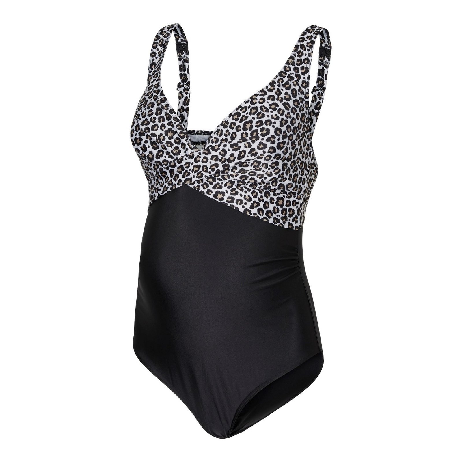 Speels Zwangerschapsbadpak met een V-hals die is afgewerkt met elegante ruches over de borst. Door de plooien in de zijnaad is er genoeg ruimte om te groeien.