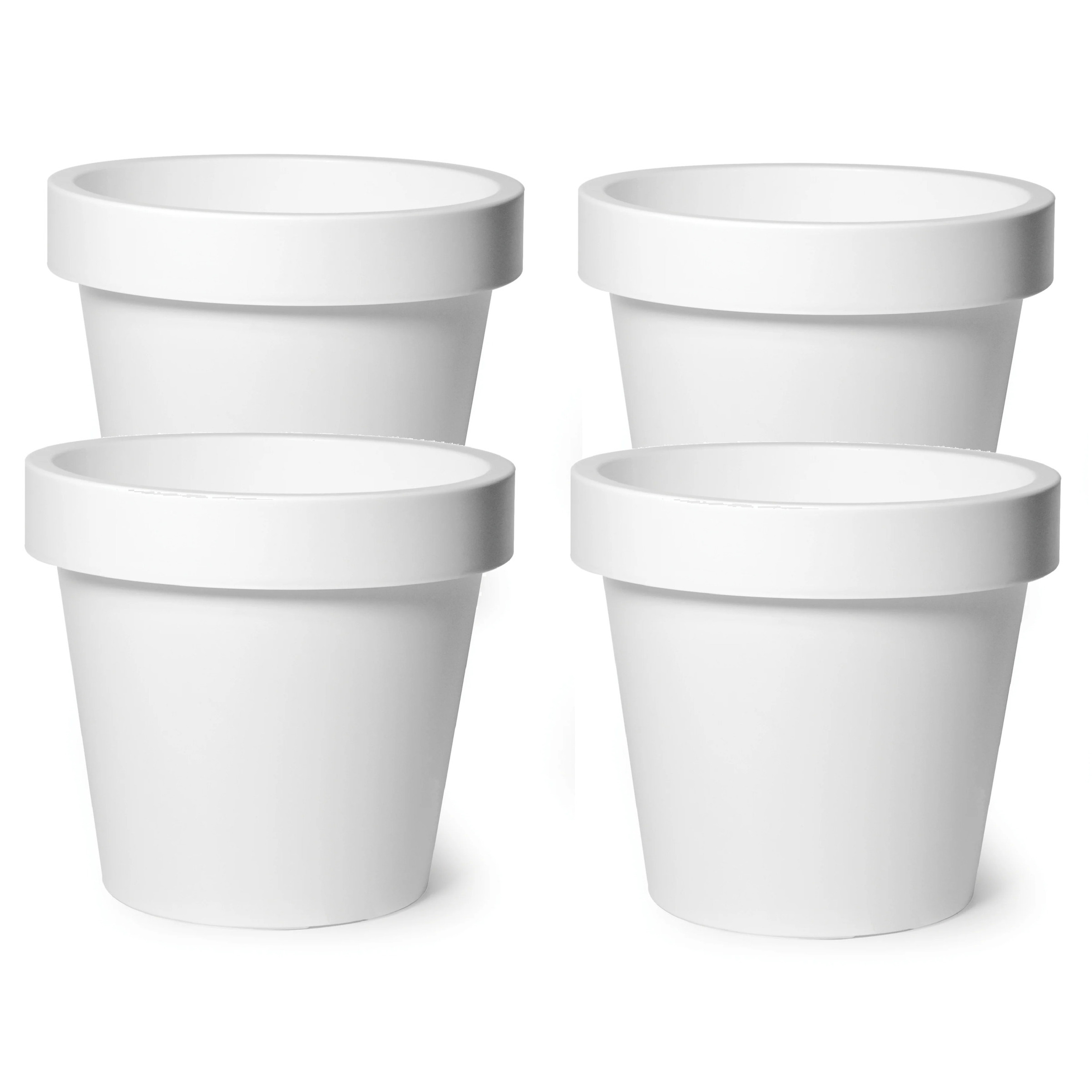 Bekijk product bij Shoppartners.nl — bestel vandaag nog en ontvang de Mega Collections Plantenpot/bloempot – 4x – kunststof – wit – buiten – D16 x H14 cm snel thuis.