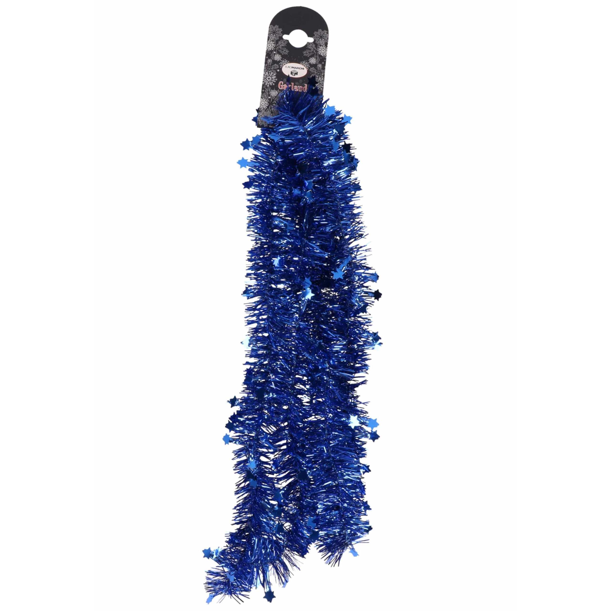 Bekijk product bij Kerst-feestwinkel.nl — bestel vandaag nog en ontvang de 1x Blauwe folie slingers/guirlandes met sterren 200 cm snel thuis.