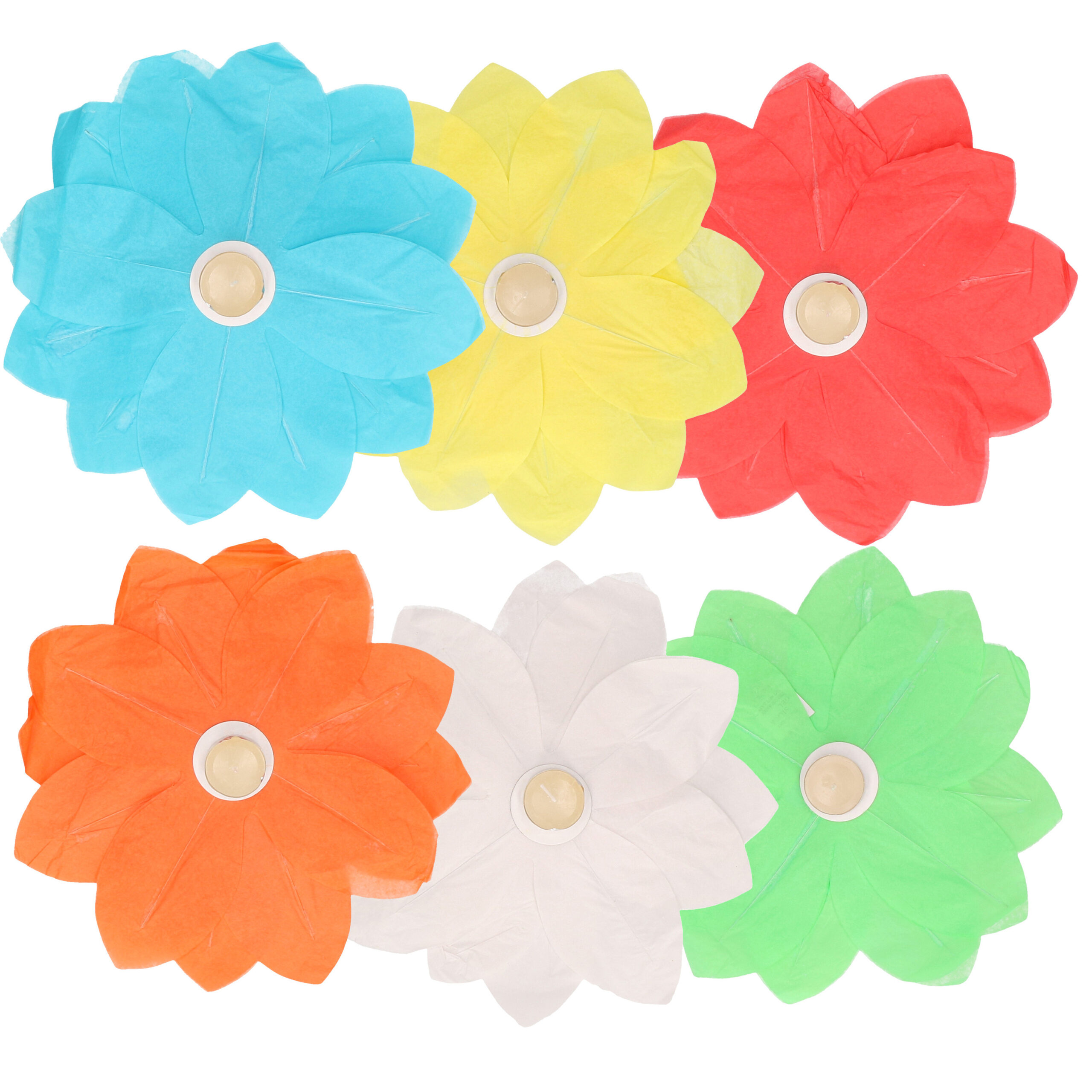 6x Bruiloft/huwelijk drijvende kaarsen/lantaarns bloemen 29 cm — Merkloos