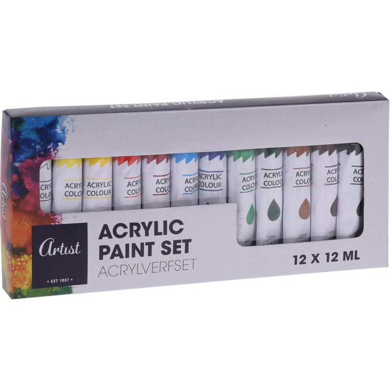 Bekijk product bij Bellatio.nl — bestel vandaag nog en ontvang de Acrylverf tubes in 12 kleuren – 12 ml – Hobby/knutselmateriaal – Schilderij maken snel thuis.