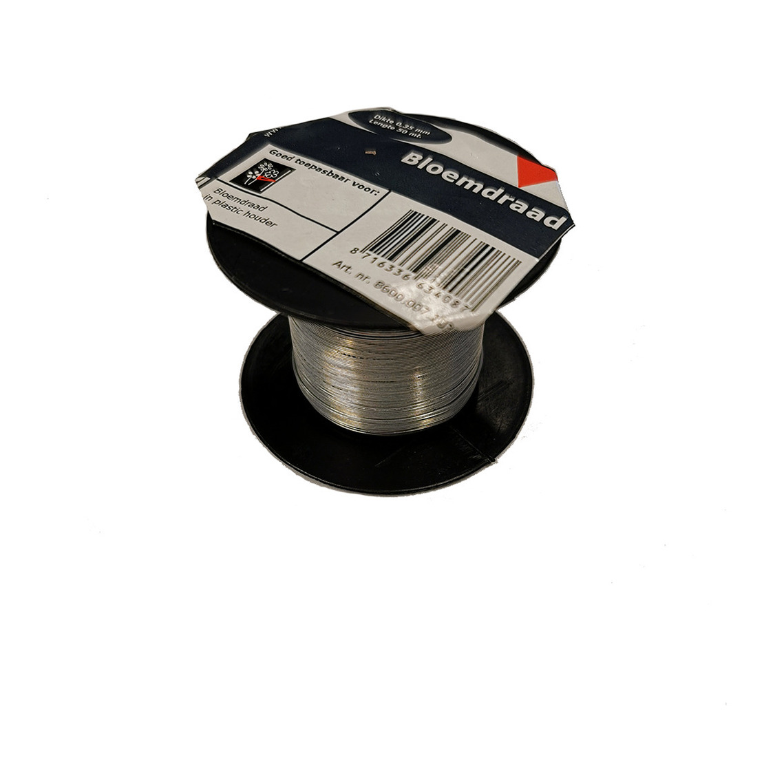 Rolletje bloemdraad / ijzerdraden 50 meter. Deze bloemendraad op spoel, is gemaakt uit staal en heeft een draaddikte van 0,35 mm. Deze bloemdraad / binddraad is ideaal voor het omwikkelen van kransen en bloemstukken.