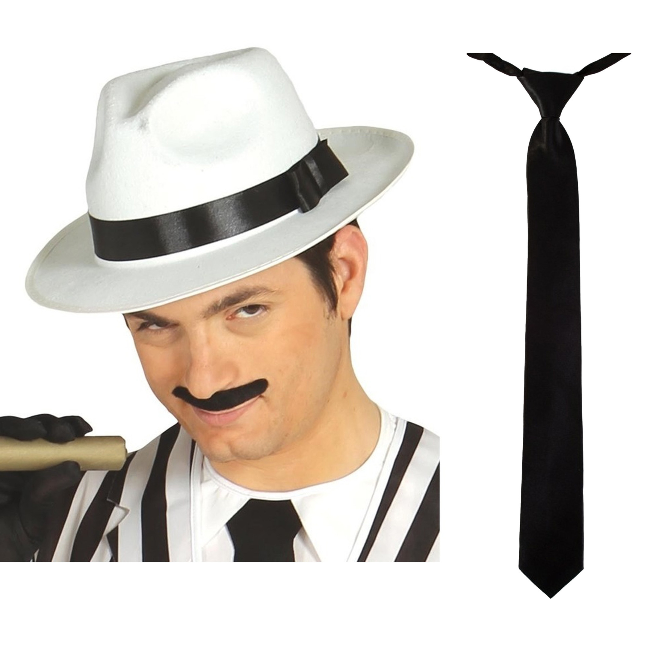 Bekijk product bij Trendmax.nl — bestel vandaag nog en ontvang de Carnaval verkleed set compleet – gangster/maffia hoedje met zwarte stropdas – volwassenen snel thuis.