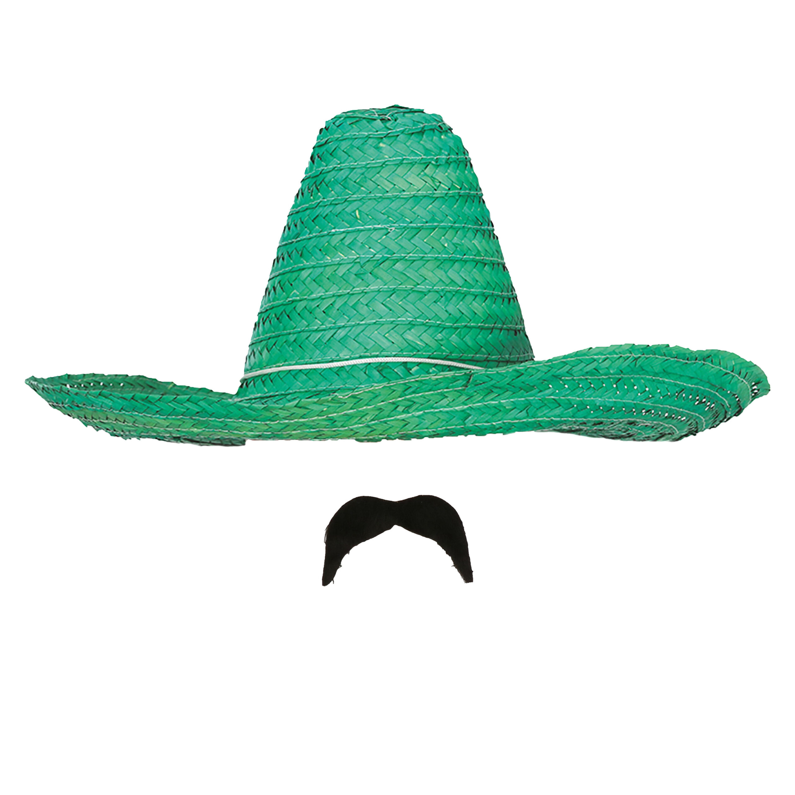 Carnaval verkleed setje – Mexicaanse sombrero hoed met plak nepsnor – groen – heren — Merkloos