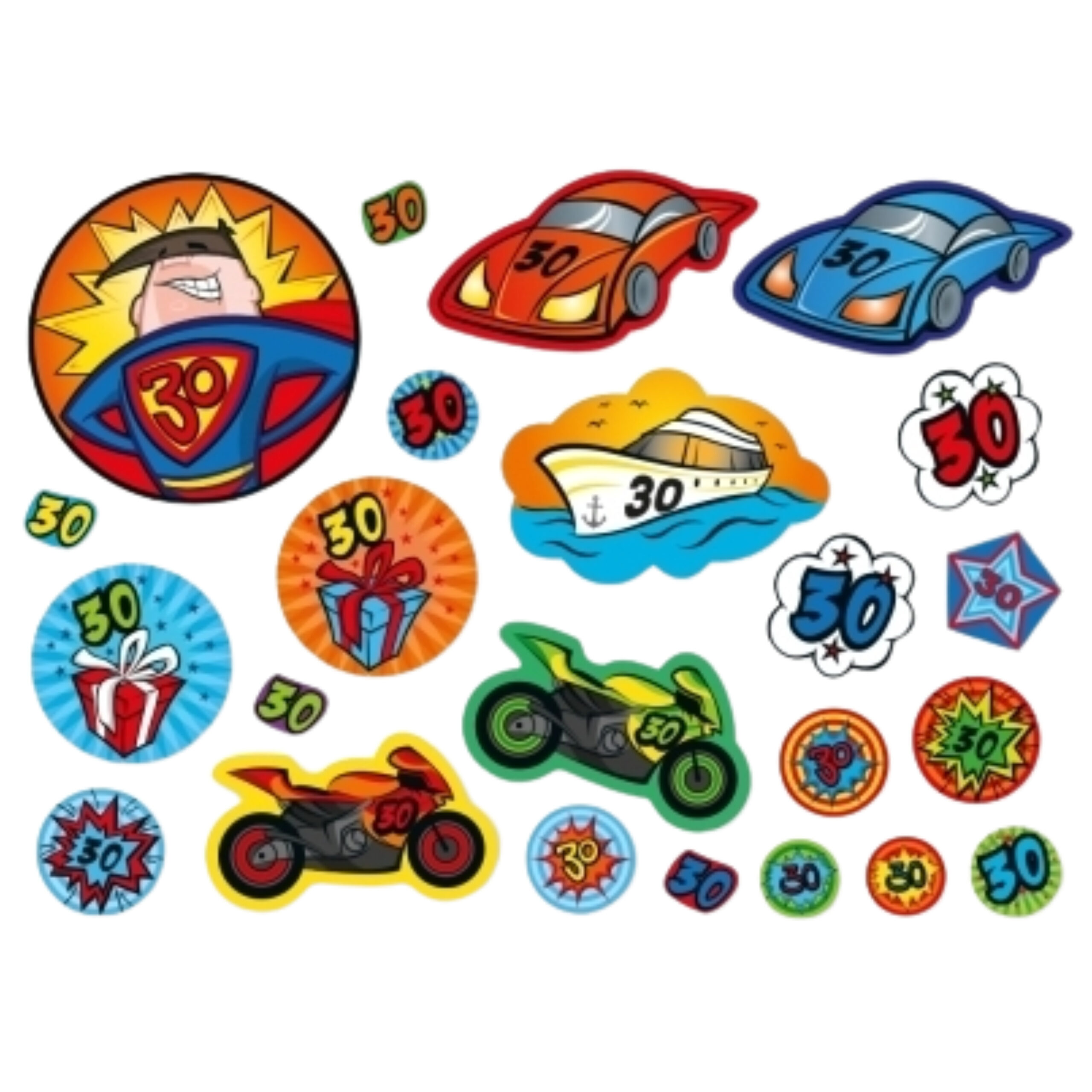 Confetti 30 jaar, 69 stuks. Zak vol met feestelijke confetti met het nummer 30. Het zakje confetti is 300 gram. De doorsnee is ongeveer 2-9 cm. De nummers zijn op beide zijden gedrukt. Leuke confetti voor uw 30e verjaardagsfeestje!