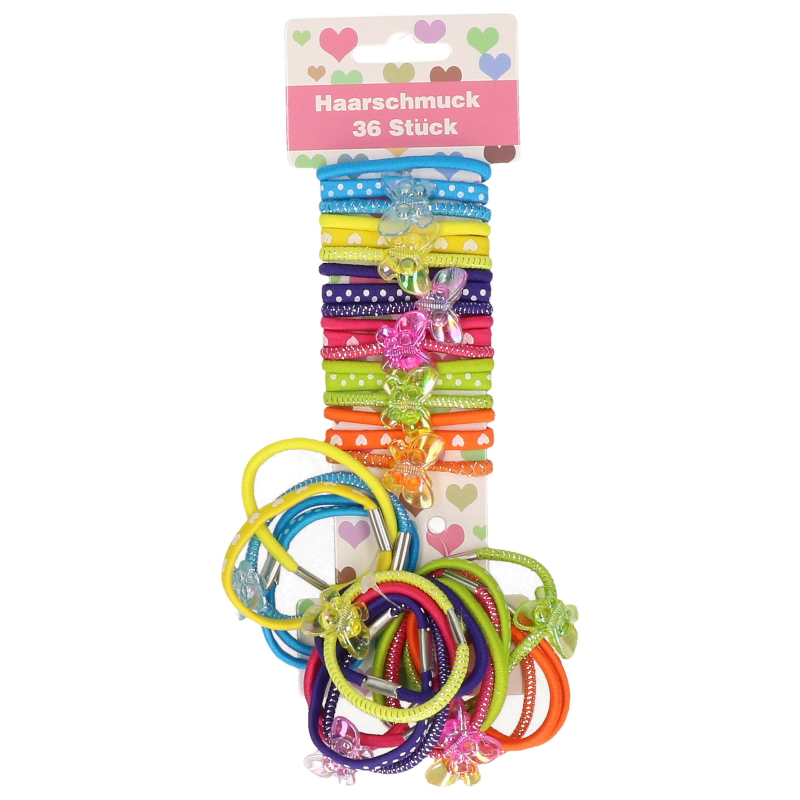 Bekijk product bij Bellatio.nl — bestel vandaag nog en ontvang de Haar elastiekjes – set 36x – gekleurd – zonder metaal – Dia 6 cm – kunststof – diverse prints snel thuis.