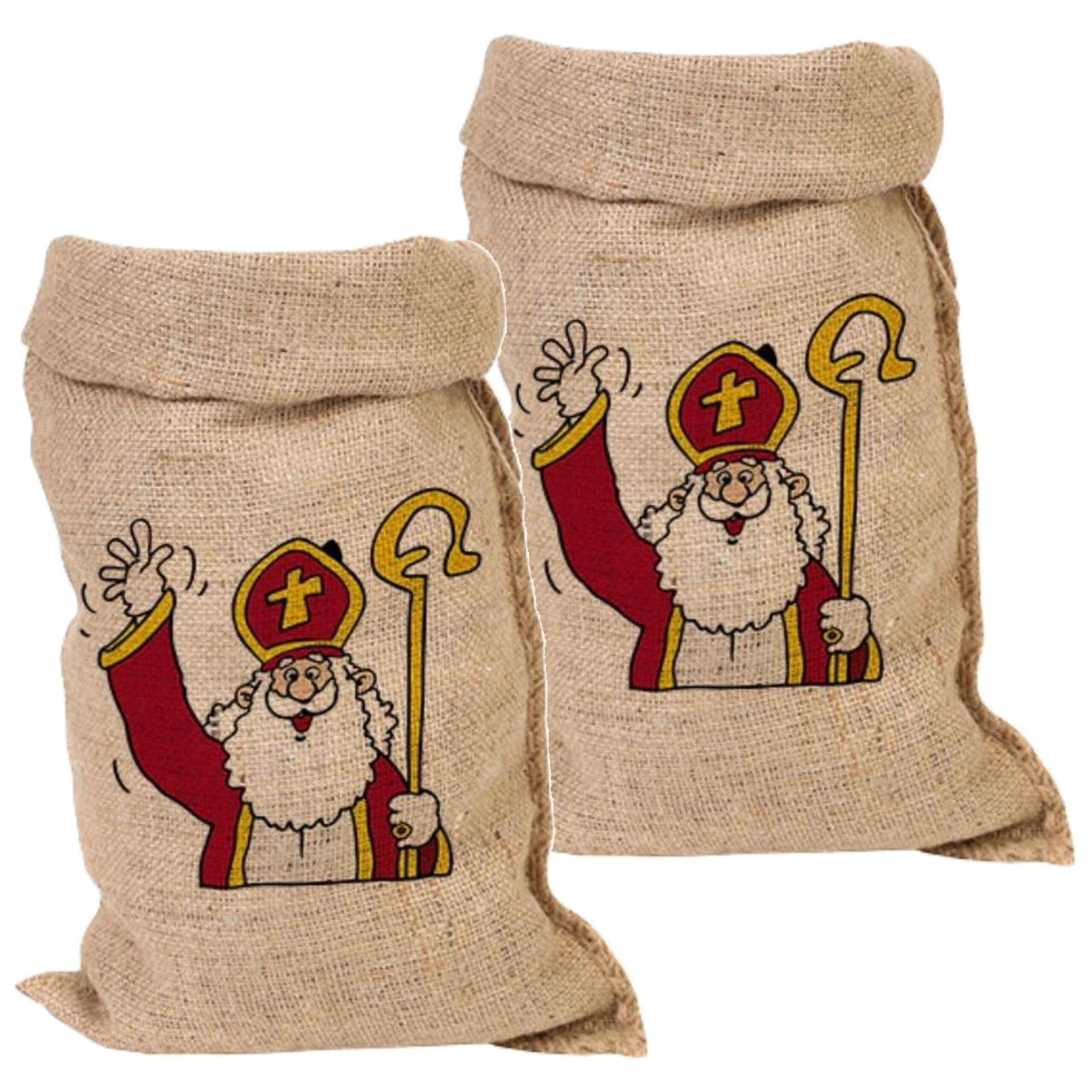 2 stuks jute Sinterklaas cadeau zak extra groot van 50 x 80 cm. Pakjesavond jute zak voor cadeautjes, met een afbeelding van Sint Nicolaas. Feestartikelen en over verpakkingen voor pakjesavond.