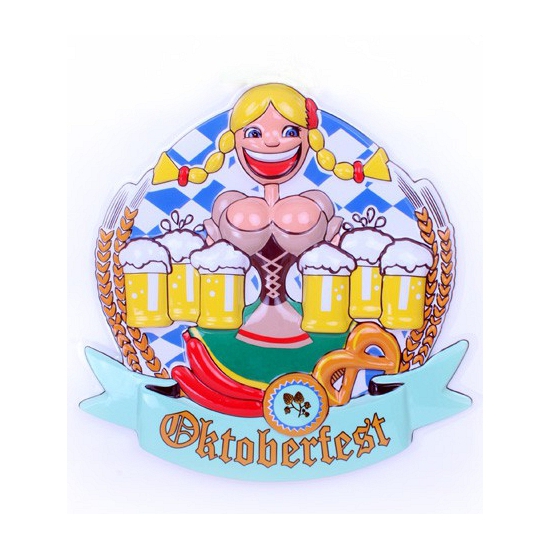 Oktoberfest 3D muur/wand decoratie Heidi 44cm. Een plastic 3D wandbord van Heidi met bierpullen in zijn handen. Formaat circa 44 x 44 cm. Enkelzijdig bedrukt. Oktoberfest/bierfeest versiering feestartikelen decoratieborden.