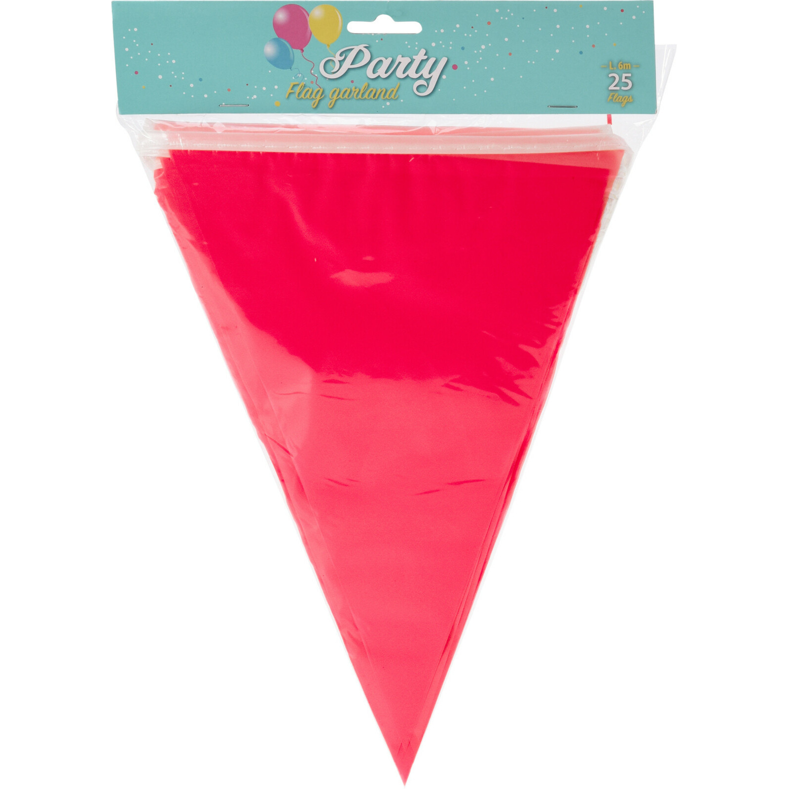 Party Vlaggenlijn voor jouw thema of verjaardag feest in de kleur rood. Er is altijd een goede reden voor een feestje. Feestartikelen en versiering voor binnen en buiten geschikt. Versier je feest locatie met deze Party Vlaggenlijn! Perfect voor zowel binnen- als buitenevenementen, brengt deze vlaggenlijn meteen sfeer en kleur naar elk feest. Met zijn heldere rode kleur en ruime lengte is het een uitstekende keuze voor verjaardagen, jubilea, barbecues, en andere feestelijke gelegenheden. Maak van elk feest een vrolijk spektakel met deze rode Party Vlaggenlijn! Afmeting: 6 meter, 25 vlaggetjes. Materiaal: plastic.