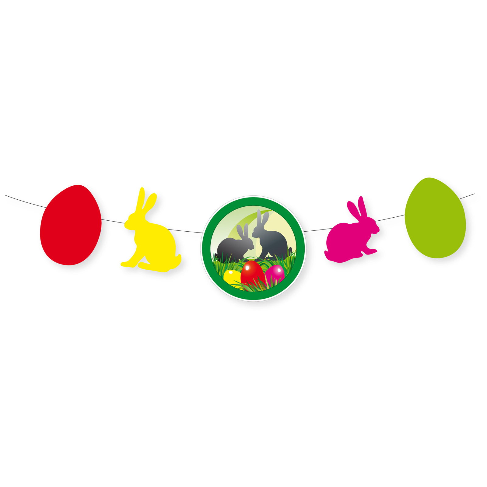 Pasen thema slinger om op te hangen van 120 cm. Papieren paasdecoratie voor binnen. De slinger bestaande uit paashazen prints is brandvertragend. De Paasversiering thema slinger heeft een totale lengte van 120 cm en is 28 cm hoog. Leuk voor thuis of in je winkel/restaurant.