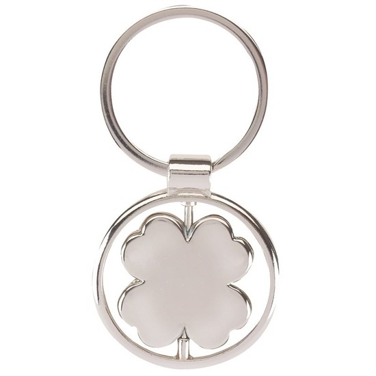 Sleutelhanger klavertje vier – 3,5 cm – aluminium/staal – draaibaar — Merkloos