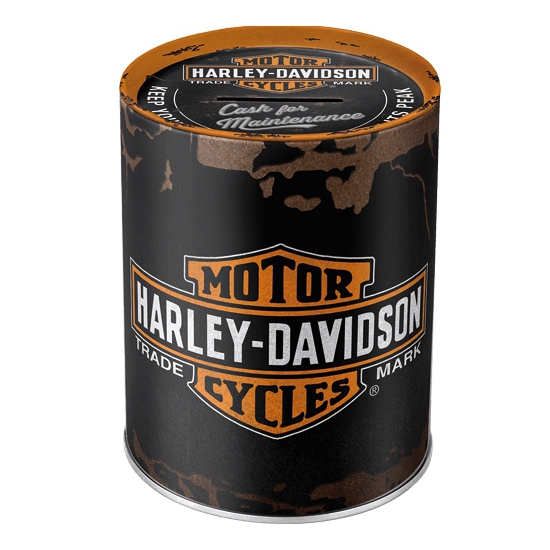 Spaarpot in Harley Davidson thema. Een ronde spaarpot voor mannen van het merk Harley Davidson. De diameter van de spaarpot is circa 10 cm en 13 cm hoog. Materiaal: blik en vervaardigd van metaal. Meer info →