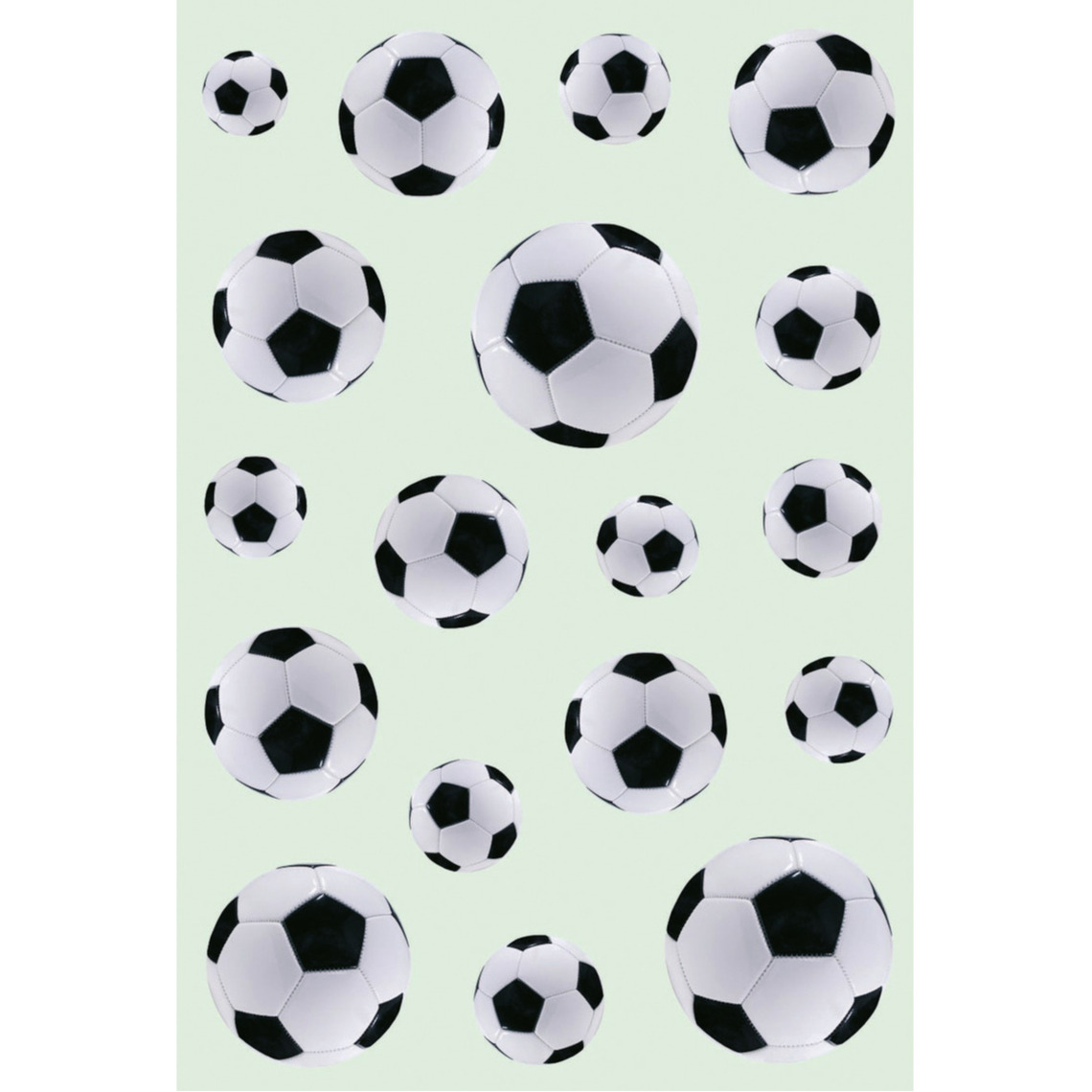 Bekijk product bij Shoppartners.nl — bestel vandaag nog en ontvang de Stickers voetbal thema – 1x vel – 16 x 9 cm – 54 stickers – zwart/wit – snel thuis.