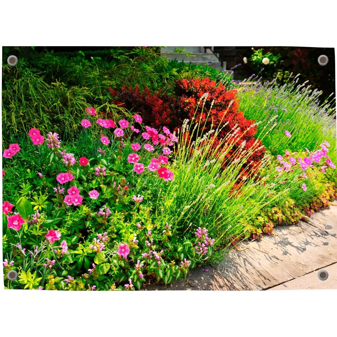 Geef sfeer aan jouw tuin, balkon of dakterras met een eigen ontworpen tuinposter of kies voor een kant-en-klaar ontwerp van PillowBuddies zoals deze Tuinposter Tuin 2. Kies uit de vele formaten. Staat jouw maat er niet bij? Neem dan even contact met ons op en vraag naar de mogelijkheden.