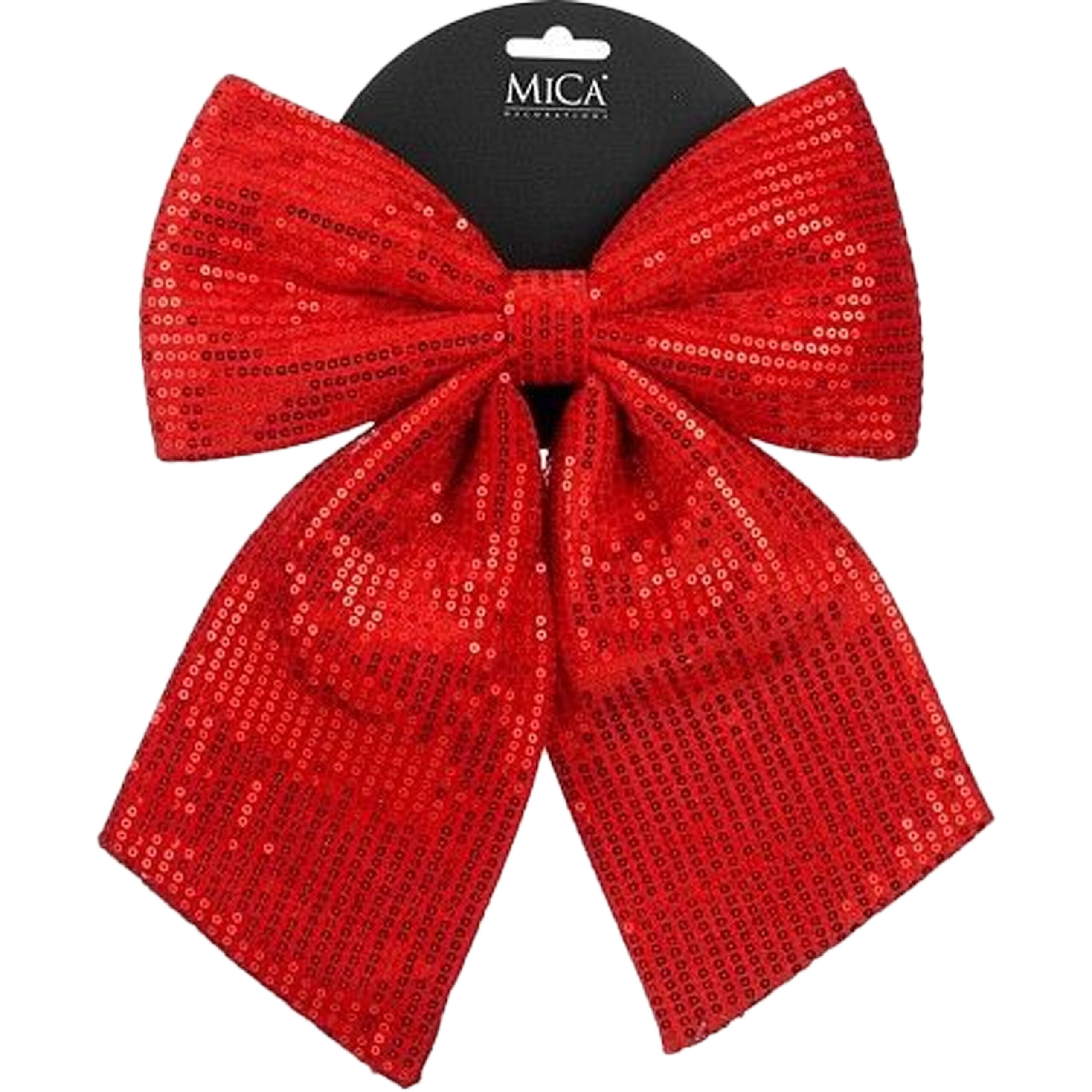 Bekijk product bij Fun-en-feest.nl — bestel vandaag nog en ontvang de Mica Decorations Kerst strik – rood – 24 x 28 cm – pailletten – snel thuis.