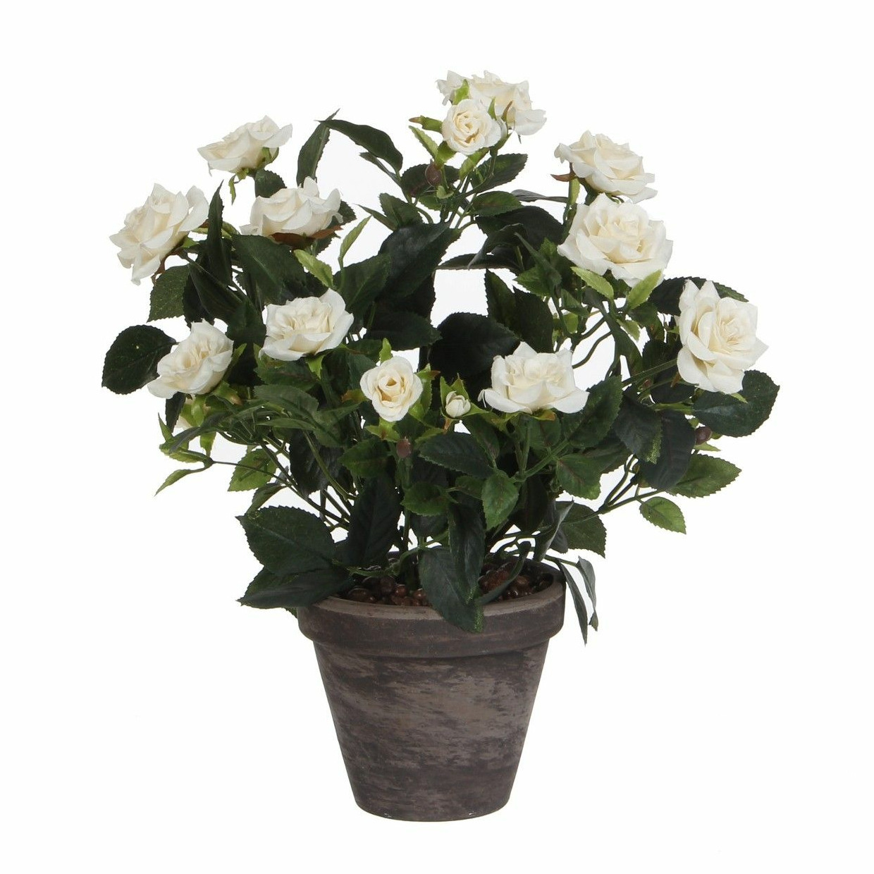 Mica Decorations Kunstplant – rozen – wit – in grijze pot – 33 cm – — Mica Decorations