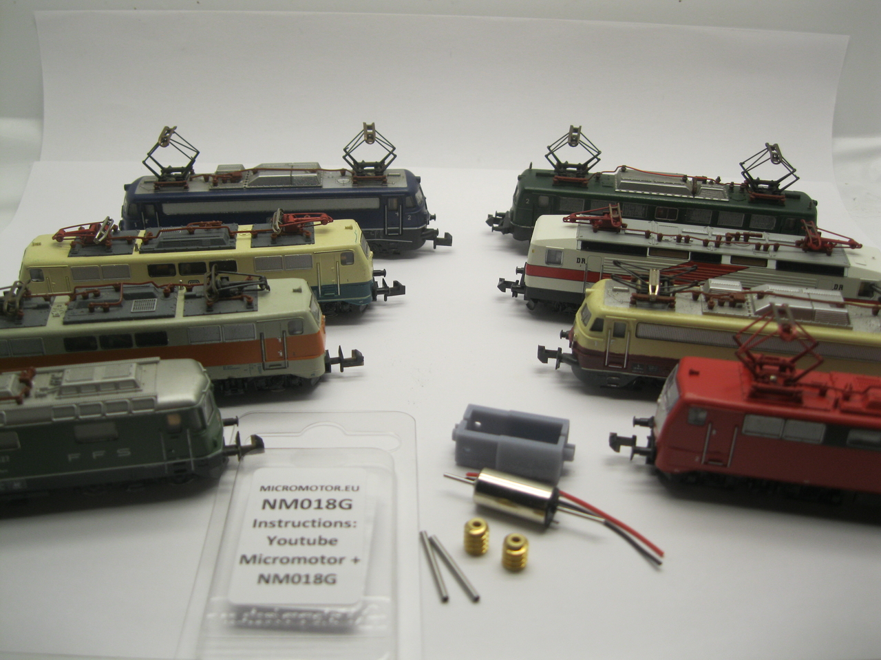 De micromotor NM018G N ombouwset voor minitrix DB E10, BR 110, E40, BR 140, u.a. is verkrijgbaar via Micromotor.nl met snelle levering in Nederland. Meer info →