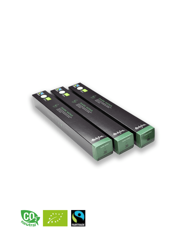 “Voor mijn geen ander merk meer” Vers gebrande koffie met een pittig karakter. Uw perfect Ristretto of Espresso. Dark Moka Mokafina capsules bevatten 10 aluminium capsules in een doosje. Kiezen voor D Meer info →