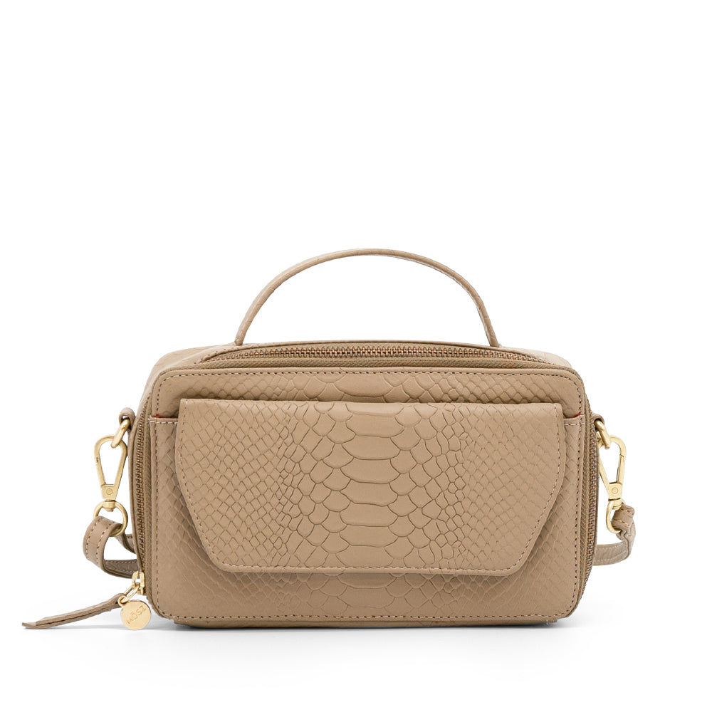 Dames leren handtas – taupe slangenprint – MŌSZ Naomi — MŌSZ
