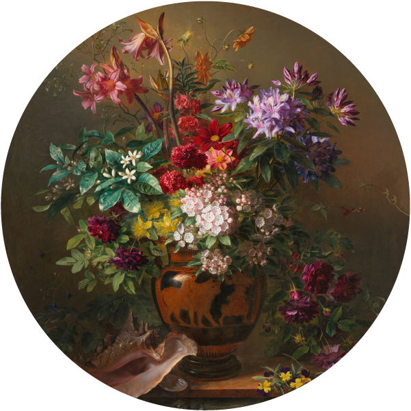 Stilleven met Bloemen Griekse vaas – Georgius Jacobus Johannes van Os – Muurcirkel sticker — Muurteksten.nl